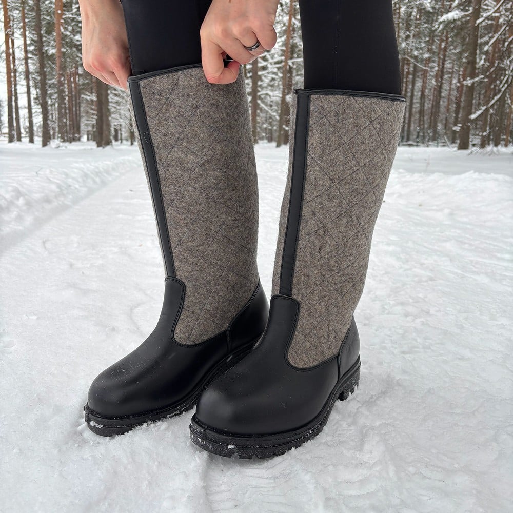 Mustad kõrge säärega viltsaapad.